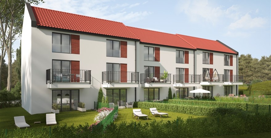 Obecnie do sprzedaży są zarówno apartamenty położone skrajnie, jak i w środku szeregu budynków, możliwość wyboru apartamentu (w zależności od położenia różnią się one wielkością ogródka i ceną).