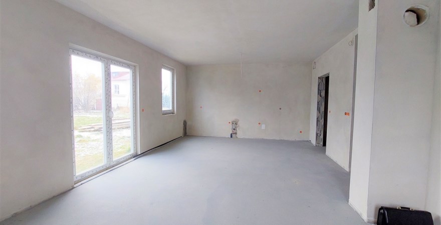 Funkcjonalne 3 pokojowe mieszkanie o powierzchni 81,88 mkw., położone na parterze w bliźniaku czterolokalowym. Ogrzewanie podłogowe w kuchni, łazience oraz korytarzu. Tynki cementowo-wapienne. Na dachu dachówka firmy EURONIT. Okna PCV 3 szybowe. Ocieplenie budynku styropianem o grubości 15 cm.