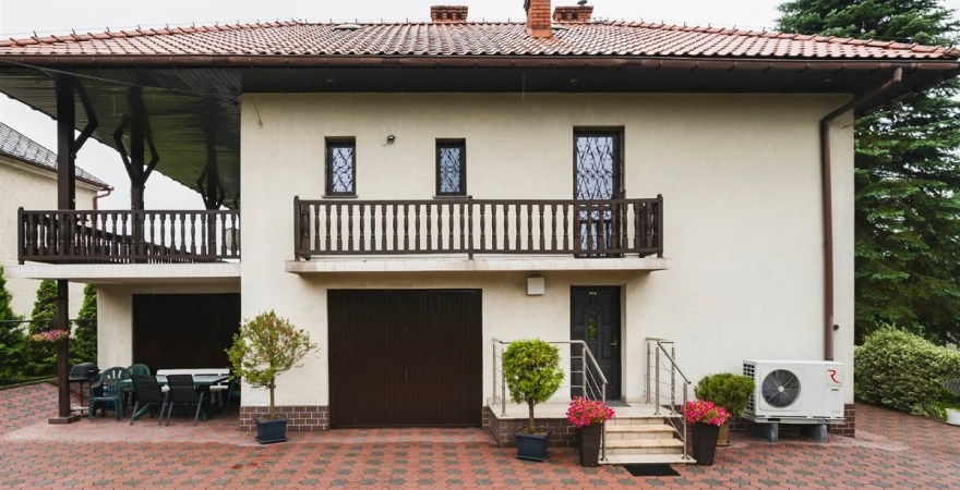 WYPOSAŻENIE: Dom jest w uzbrojony w media. Dostęp do wody, prądu a także do internetu (światłowód). Ogrzewanie odbywa się z pomocą pompy ciepła zewnętrznej z zasobnikiem /300 litrów/ a ciepło rozprowadzane jest do grzejników. Doadatkowo na dachu panele fotowoltaiczne 8,3 kW. Budynek jest podłączony do sieci kanalizacji sanitarnej. Ogrzewanie podłogowe w holu i łazience.