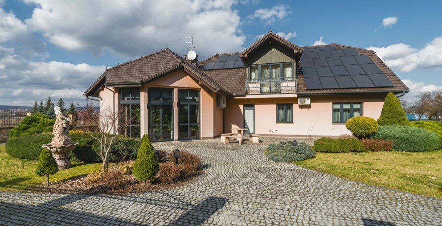 Dom ma szeroki i wygodny podjazd, możliwość parkowania w garażu dwóch samochodów i kilku przed garażem.