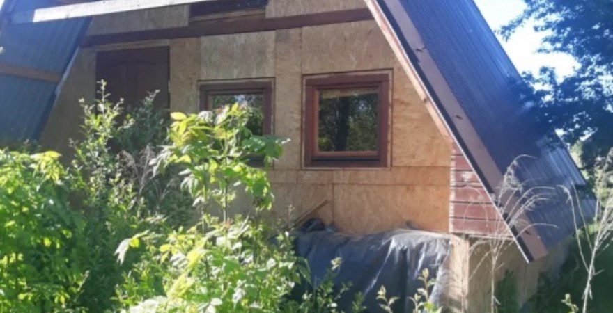 W działce jest woda i prąd do podłączenia. Domek wymaga wykończenia z zewnątrz.